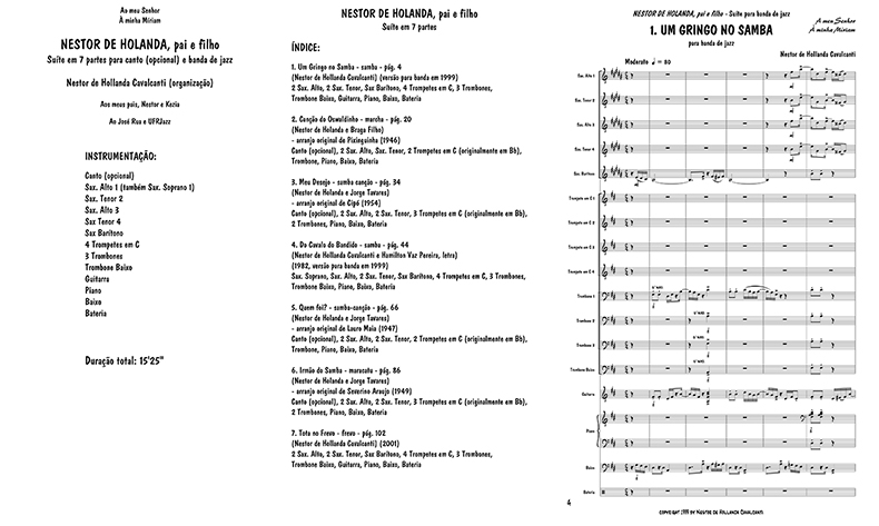 1. Um Gringo no Samba - samba (2'12") autor: Nestor de Hollanda Cavalcanti versão para banda em 1999 [2 sax alto, 2 sax tenor, sax barítono, 4 tpt, 4 tb, guit, piano, bx, bat] | |